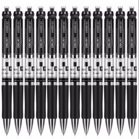 得力(deli)0.5mm按動(dòng)中性筆辦公簽字筆 子彈頭黑色12支/盒 辦公用品S01