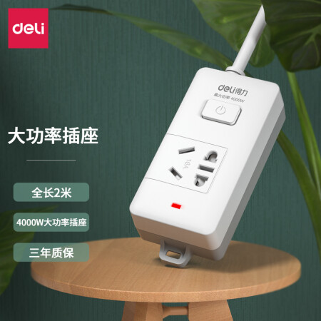 得力 deli 16A大功率插座 4kw空調(diào)插座/插排/插線(xiàn)板/排插/接線(xiàn)板 單孔 總控開(kāi)關(guān) 18277-02(送10A插頭)