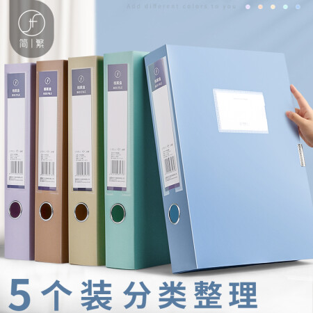 簡(jiǎn)繁 55mm莫蘭迪A4粘扣檔案盒5個(gè)裝 文件收納資料盒塑料整理盒辦公用品 藍(lán)+紫+黃+綠+桔